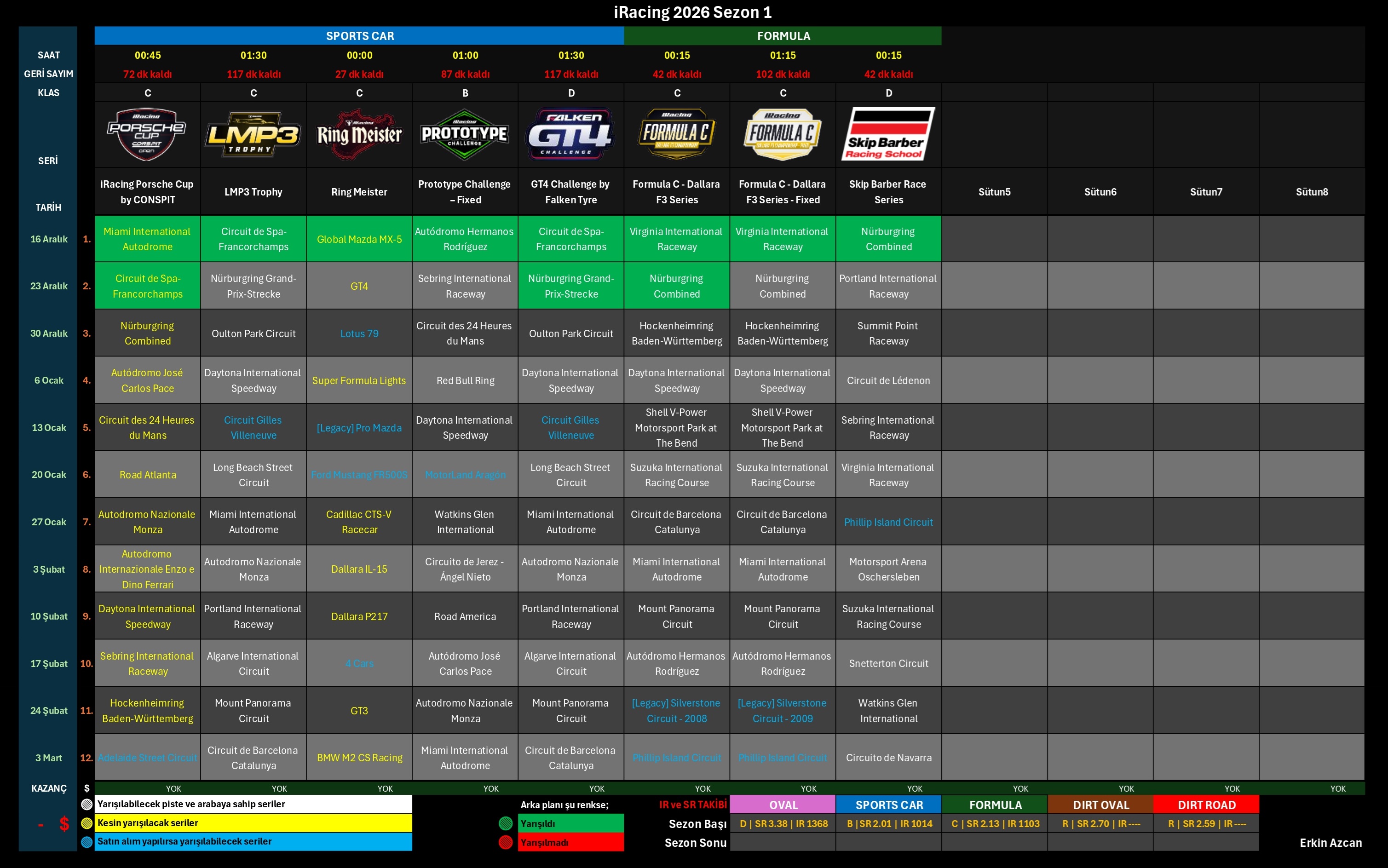 NOT: iRacing-Yaris-Takvimi.rar boş takvimdir. iRacing-Yaris-Takvimi-Erkin.rar benim kendi takvimimdir, örnek olsun diye indirebilirsiniz.
